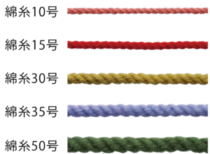 | 綿糸(たこ糸)10号 | 約95m | 60巻 | 10巻 | 約190m | 50巻 | 50巻 | 約125m | 60巻 | 1巻 | 約320m | 60巻 | 60巻 | 6巻 | 6巻 |