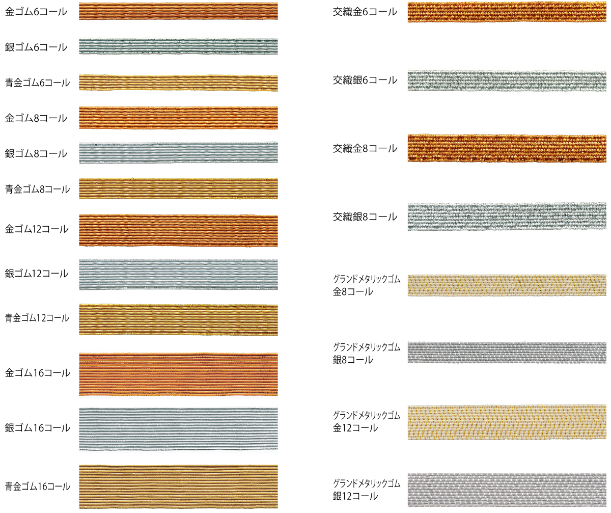 HOME 商品を探す 用途から探す 加工方法から探す 商品(パーツ)から探す 天然素材の商品 東京テープの強み 会社紹介 お問い合わせ HOME 商品を探す 用途から探す 加工方法から探す 商品(パーツ)から探す 天然素材の商品 東京テープの強み 会社紹介 お問い合わせ 商品(パーツ)から探す HOME > 商品(パーツ)から探す > ゴム > メタリックカラーゴム(6ー16コール) メタリックカラーゴム(6ー16コール) 仕様 品名 太さ 長さ 素材 対応している加工方法 平ゴム6コール 約4.5㎜ 約150m ポリエステル系ラメ、天然ゴム 平ゴム8コール 約5.5㎜ 約150m ポリエステル系ラメ、天然ゴム 平ゴム12コール 約9㎜ 約150m ポリエステル系ラメ、天然ゴム 平ゴム16コール 約12㎜ 約75m ポリエステル系ラメ、天然ゴム 平ゴム交織6コール 約5㎜ 約150m ポリエステル系ラメ、レーヨン、天然ゴム 平ゴム交織8コール 約7㎜ 約150m ポリエステル系ラメ、レーヨン、天然ゴム グランドメタリックゴム8コール 約5㎜ 約150m ポリエステル系ラメ、レーヨン、天然ゴム グランドメタリックゴム12コール 約9㎜ 約150m ポリエステル系ラメ、レーヨン、天然ゴム 加工方法(アイコン)一覧 梅水引 カット 紙バンド 結び 房 縫製 ゴムパッチン 非対応 ・出荷単位…1巻より(ボビン巻) ・商品特性…ゴム紐は伸縮がある為、m表示に約を付けさせて頂きます。 ・伸び…2倍~2.5倍 ・指定寸法にカットできます。 ・加工内容…表をご覧ください。 縫製加工 用途:箱 加工方法:タグ付け加工 商品(パーツ):ゴム メタリックカラーゴム(6ー16コール) 1 / 11 用途から探す 箱 容器(お弁当・ビン) 袋 加工方法から探す 結び各種(ゴム紐) リボン+ゴム ゴム+蝶リボン ループ結び ゴム+梅水引・紙バンド タグ付け加工 房(フリンジ)付け加工 カット加工(リボン) 名入れ印刷 商品(パーツ)から探す ゴム リボン 紐(ひも) タイ(帯) その他 お問い合わせ 当サイトのご利用について 当サイトでは製品の通信販売は行っておりません。弊社では個人のお客様への直接小売は行っておりません。 弊社製品は主に各種メーカー様、商社様、事業主様へ納入させて頂いております。直接のお取り引きをご希望の場合はお問い合わせフォームよりご連絡ください。