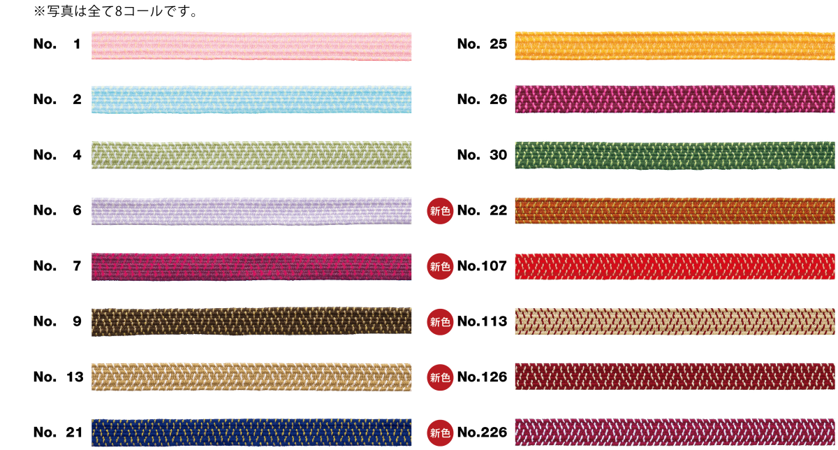 HOME 商品を探す 用途から探す 加工方法から探す 商品(パーツ)から探す 天然素材の商品 東京テープの強み 会社紹介 お問い合わせ HOME 商品を探す 用途から探す 加工方法から探す 商品(パーツ)から探す 天然素材の商品 東京テープの強み 会社紹介 お問い合わせ 商品(パーツ)から探す HOME > 商品(パーツ)から探す > ゴム > ナイロン和風交織ゴム ナイロン和風交織ゴム 巾見本 仕様 品名 太さ 長さ 素材 対応している加工方法 ナイロン和風交織丸ゴム 約1㎜ 約300m ナイロン&天然ゴム ナイロン和風交織ゴム4コール 約3㎜ 約300m ナイロン&天然ゴム ナイロン和風交織ゴム8コール 約5.5㎜ 約150m ナイロン&天然ゴム 加工方法(アイコン)一覧 梅水引 カット 紙バンド 結び 房 縫製 ゴムパッチン 非対応 ・出荷単位…1巻より(ボビン巻) ・別注12コール巾も承ります。(1色100m 10巻以上) ・商品特性…ゴム紐は伸縮がある為、m表示に約を付けさせて頂きます。 ・伸び…約2倍 ・指定寸法にカットできます。 ・表をご覧ください。 用途:箱 加工方法:ゴム+梅水引・紙バンド 商品(パーツ):ゴム ナイロン和風交織ゴム 用途:箱 商品(パーツ):ゴム ナイロン和風交織ゴム 紐(ひも) 用途:容器(お弁当・ビン) 加工方法:ゴム+梅水引・紙バンド 商品(パーツ):ゴム ナイロン和風交織ゴム 用途:容器(お弁当・ビン) 加工方法:ゴム+梅水引・紙バンド 商品(パーツ):ゴム ナイロン和風交織ゴム 1 / 11 用途から探す 箱 容器(お弁当・ビン) 袋 加工方法から探す 結び各種(ゴム紐) リボン+ゴム ゴム+蝶リボン ループ結び ゴム+梅水引・紙バンド タグ付け加工 房(フリンジ)付け加工 カット加工(リボン) 名入れ印刷 商品(パーツ)から探す ゴム リボン 紐(ひも) タイ(帯) その他 お問い合わせ 当サイトのご利用について 当サイトでは製品の通信販売は行っておりません。弊社では個人のお客様への直接小売は行っておりません。 弊社製品は主に各種メーカー様、商社様、事業主様へ納入させて頂いております。直接のお取り引きをご希望の場合はお問い合わせフォームよりご連絡ください。