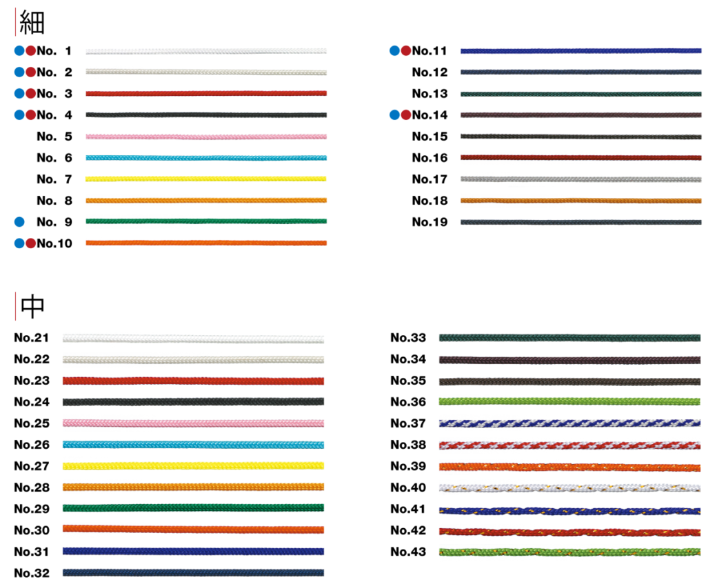 ※写真では色が異なる為(細)No、15と(中)No.35の茶は、同じ色ではありません。