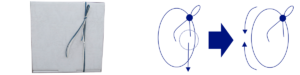 掛ける箱等のサイズに対して、少し大きめのサイズで輪結びを作ります。結び目からでる足(ひも)の片方を引き輪(ループ)を締めることでカンタンに取り付けることができます。