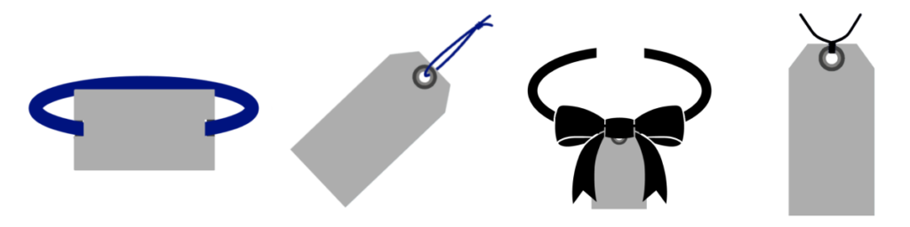 ご用意いただいたタグにゴム・ひも・結束タイをご希望の長さにカットし取り付けます。