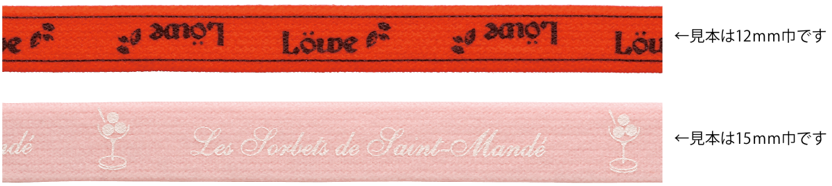 ブランド名・お店のロゴ等をテープ・リボン・ゴムへ印刷することが可能です。